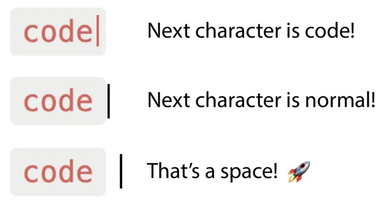 One of the biggest frustrations in using what you see is what you get (WYSIWYG) editors when coming from knowing Markdown is how they deal with inline code.