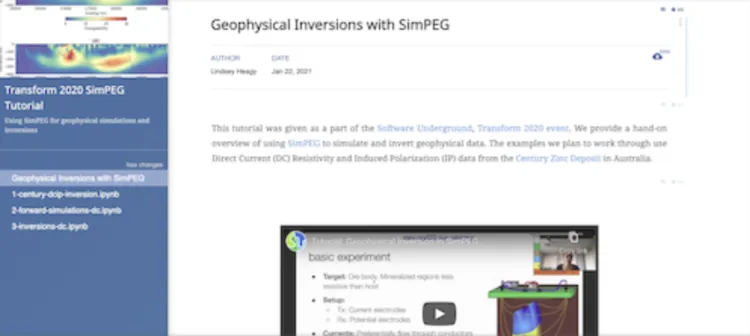 SimPEG community members use Curvenote to take meeting notes, collaborate on snippets of code in Jupyter, and share their notes and seminar videos. Their material is available on their public Curvenote profile. Dr. Sun was glad that he and his students could share their ongoing research projects within the seminar series and hopes that other students, “will be inspired by how we do our research and use open source.”