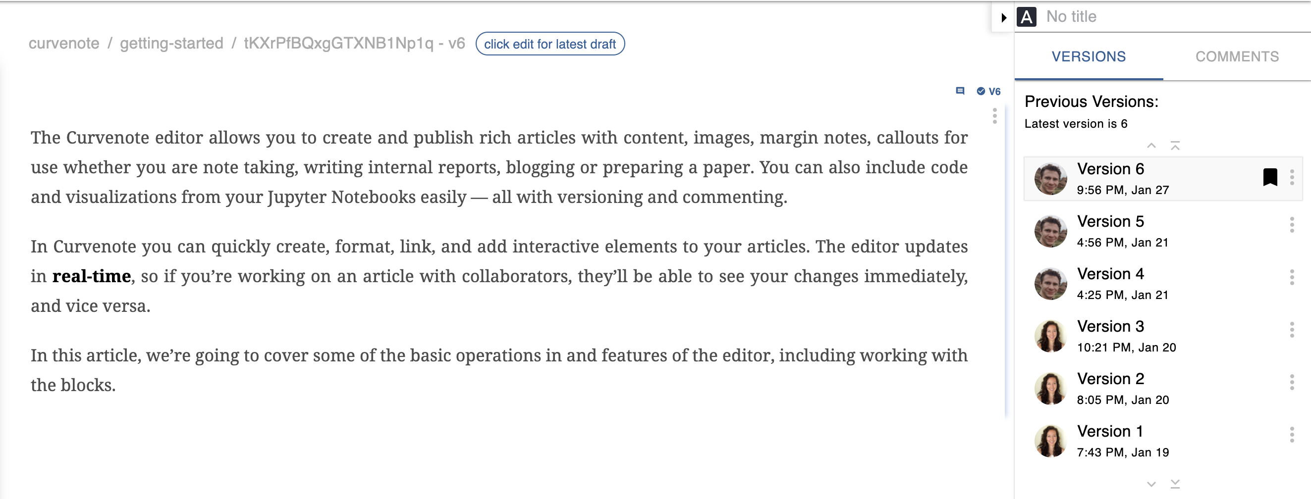 In the rest of this post, we are going to go through some of the basic concepts we have introduced in Curvenote’s version control system in our online, collaborative editor and our Jupyter Chrome Extension.