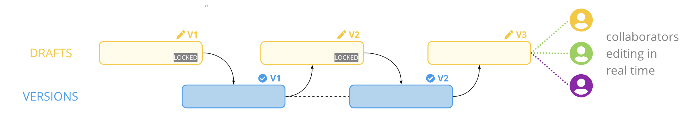 As we iterate on our writing, we create drafts and close them each time that we save and all the changes are flattened back into a consistent snapshot and stored in the next version. merging and locking of drafts is some internal terminology that you may see crop up in places. New drafts are always created on top of the latest block.